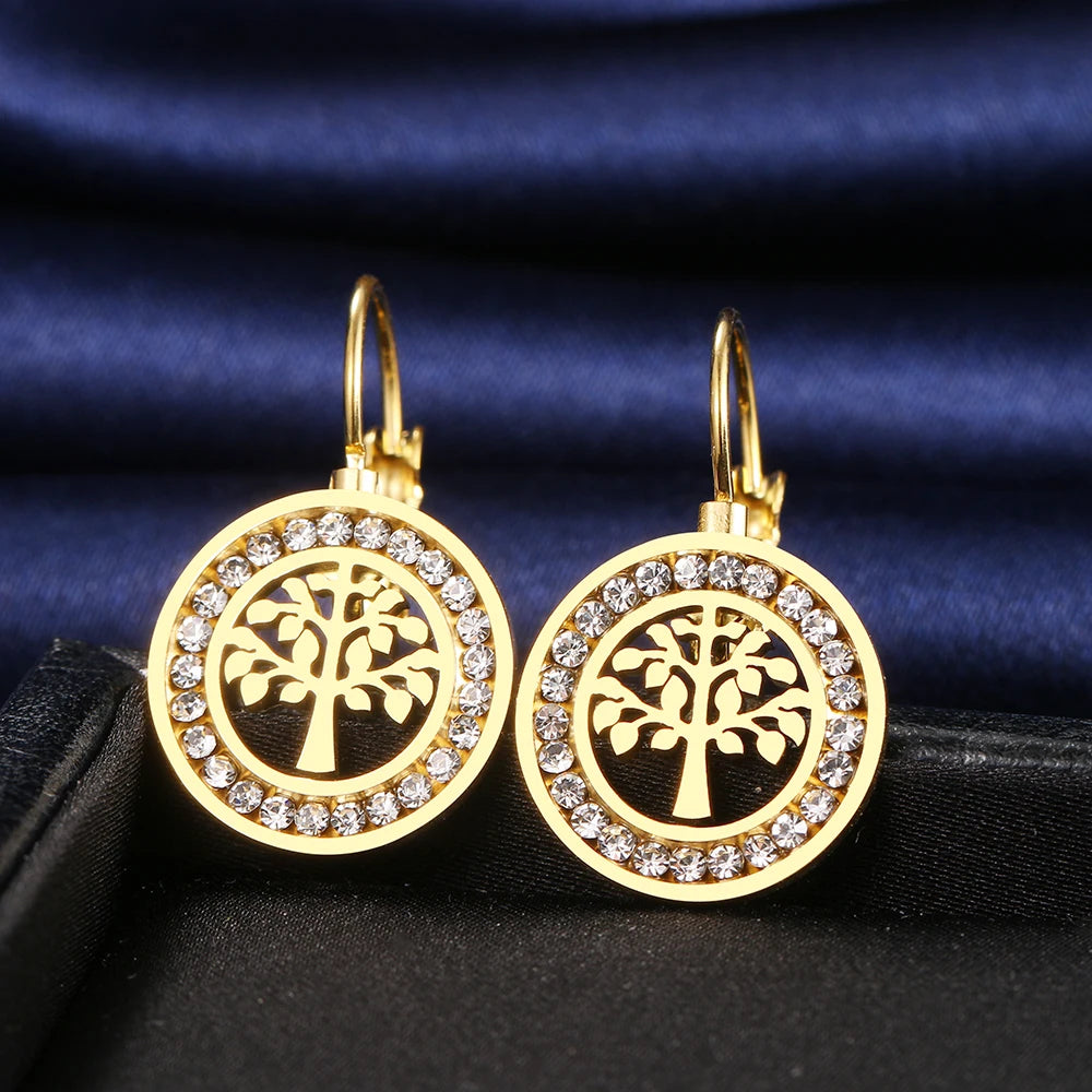 Ancient Israel Earring - Tree Of Life Stainless Steel Zircon Crystal