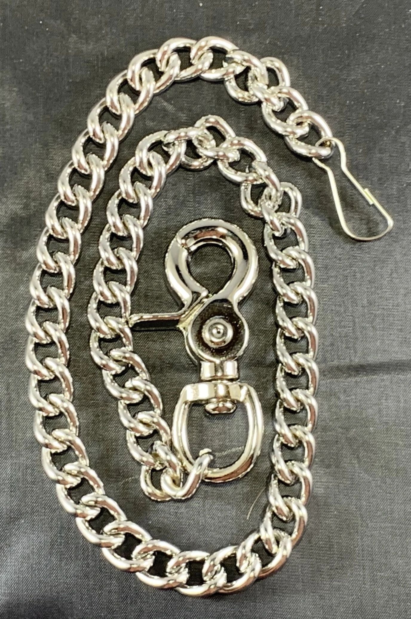 20 inch heavy chain includes heavy duty stainless steel lobster clasp swivel snap hooks  which can be attached to belt or clipped to a belt loop